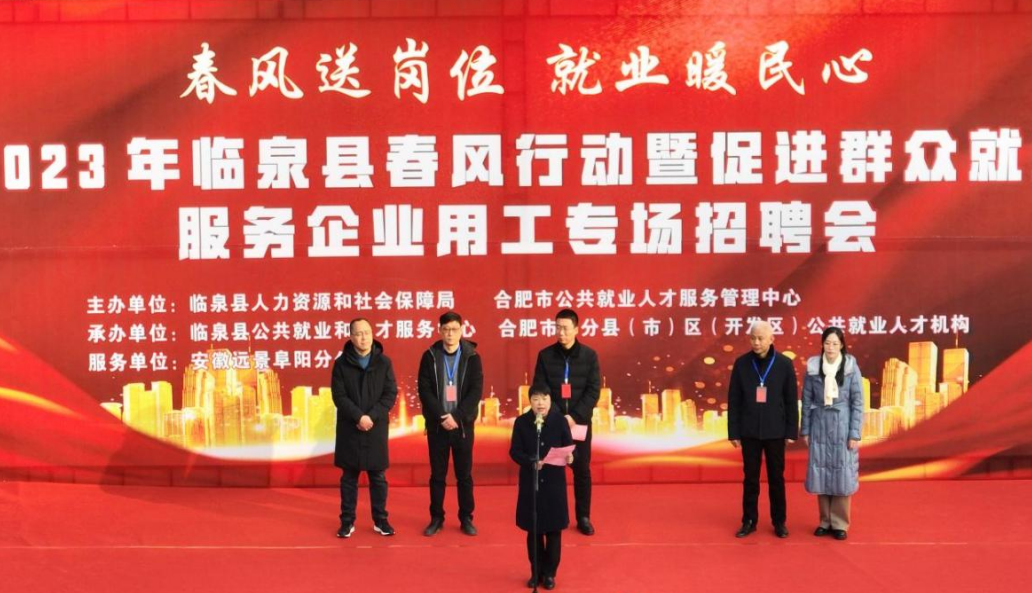 2023年2月4日,由合肥市公共就业人才服务管理中心、临泉县人力资源和社会保障局主办主题为“春风送岗位 就业暖民心”的2023年临泉县春风行动暨服务企业用工专场招聘会在临泉县姜子牙广场成功举办,本次招聘会采用“现场+网络直播”的形式,扩大宣传,增强实效。